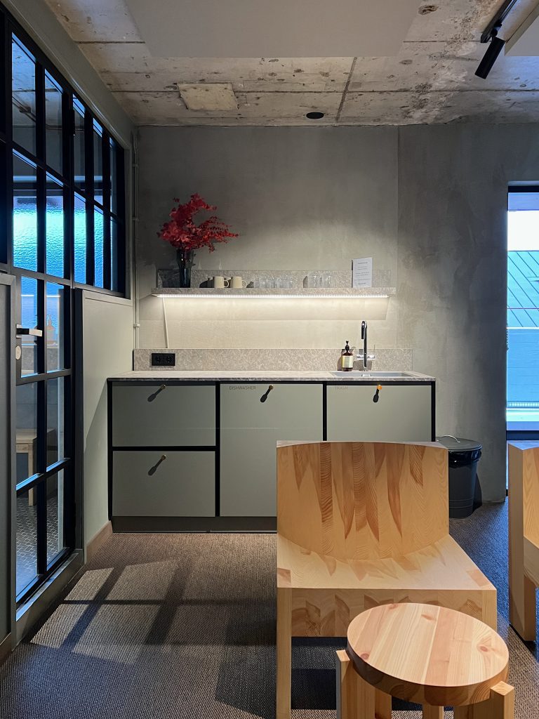Rakennuksen ylimmän kerroksen sauna ja oleskelutila, Sauna Lounge by Iittala & Bob W, kokoaa muotoilun ja maiseman yhteen. Betonipinnat ja 1970-luvulta säilynyt avotakka muistuttavat rakennuksen historiasta ja luovat tilaan rauhallista ajallista kerroksellisuutta. Tilaan kuratoitu Iittalan mallisto ja näkymä Helsingin kattojen yli tekevät saunasta olennaisen osan vierailukokemusta. Saunatilat ovat erikseen vuokrattavissa